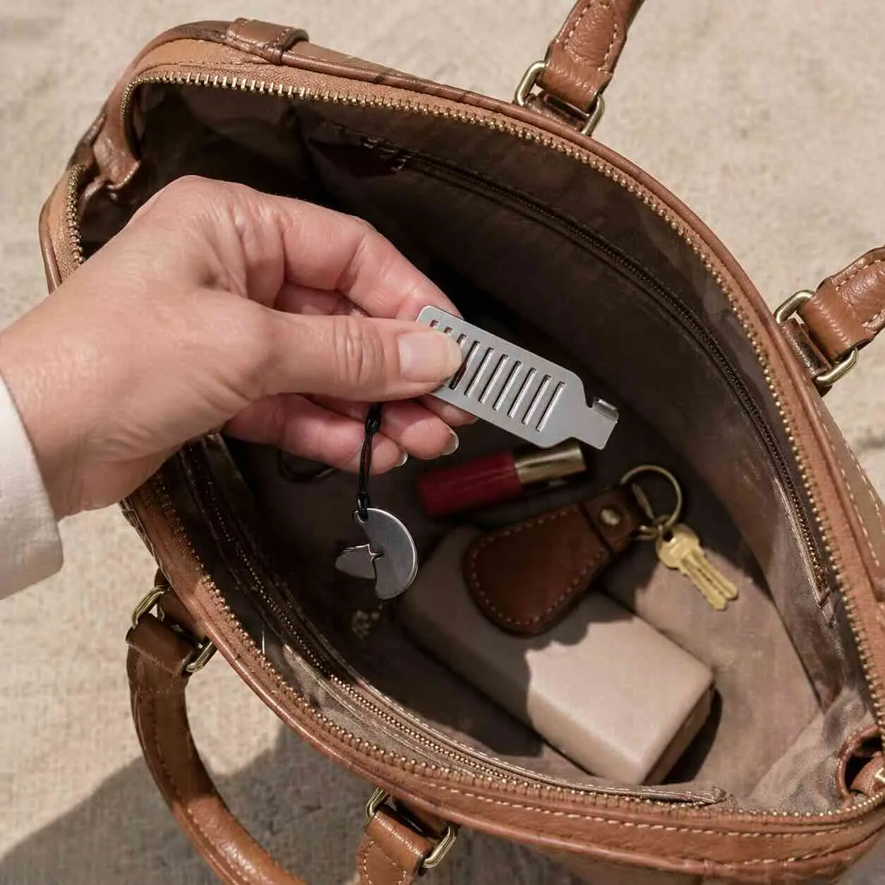Brushed stainless steel, small enough for a purse or nightstand, but solid enough to trust every night.